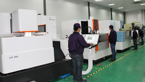 公司具有專業的設計、加工、裝配團隊,在保證質量的前提下保證交期。公司擁有CNC、快走絲、中走絲、慢走絲、鉆床、磨床、銑床、125T、200T、250T、350T、400T、650T、800T、1000T油壓機及三座標等檢測設備。